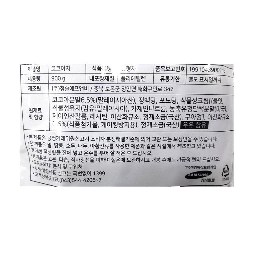 청솔FNB 코코아차(900g/EA) 이미지