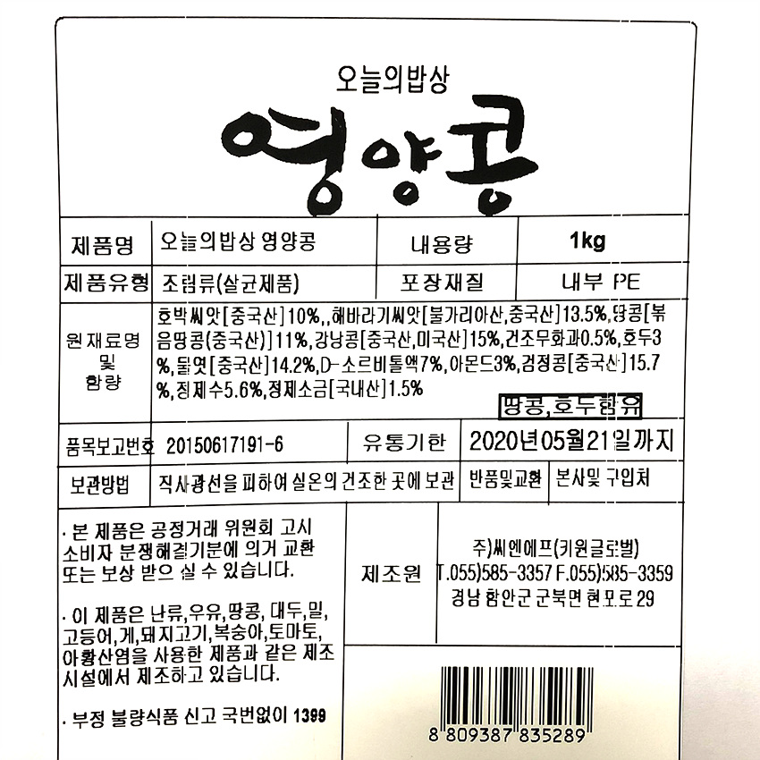 본 제품은 제품입고일별 유통기한 또는 품질유지기한이 상이하므로, 필요시 고객센터로 문의하여 주십시오. 제조일로부터 365일 까지