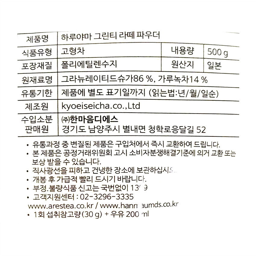 하루야마 그린티라떼파우더(500g/EA) 이미지