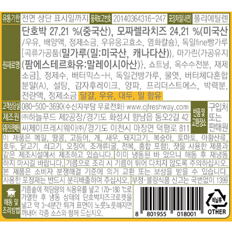 이츠웰 단호박치즈크로켓(41±2g*23~25입 1Kg/EA) 이미지