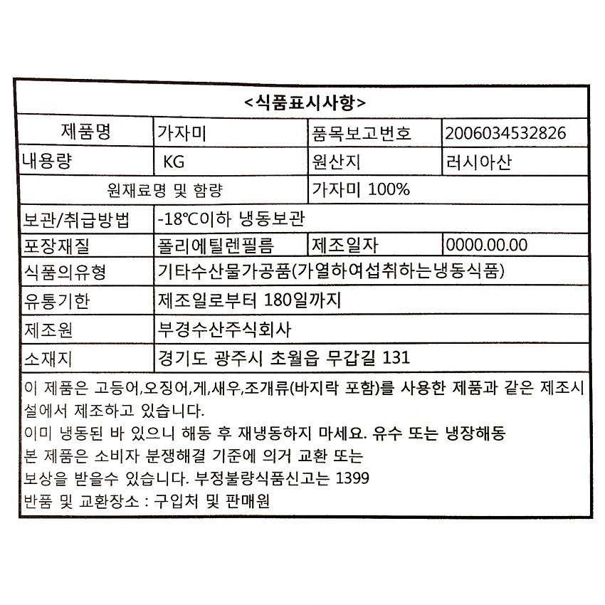 가자미(내장제거_70~90g/토막 5Kg/BOX)/러시아산 이미지