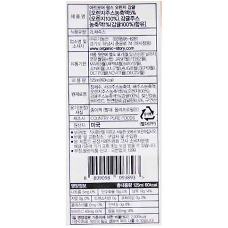 아드모어팜스 오렌지감귤주스(125ml 125g/EA)x20 이미지