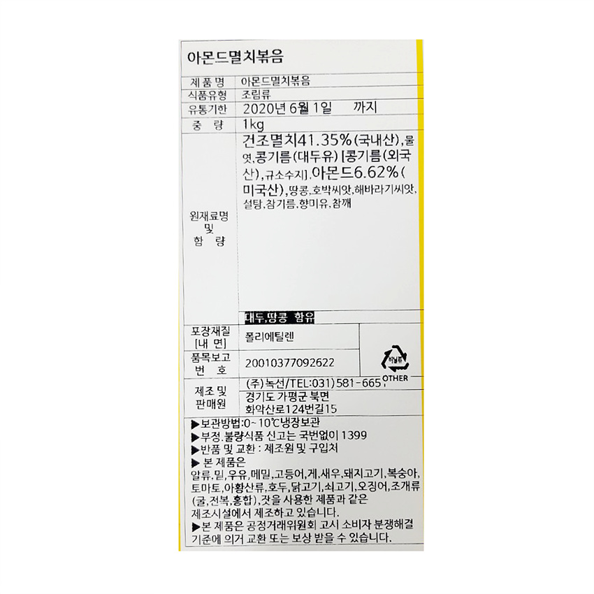 녹선 아몬드멸치볶음(1Kg/EA) 업소용 반찬