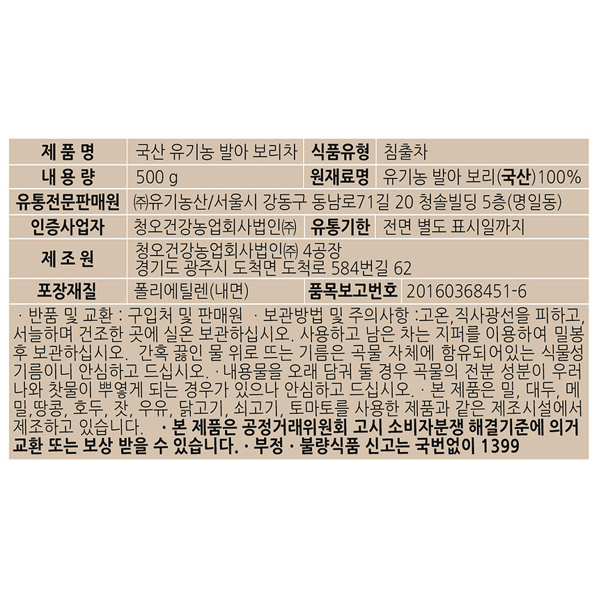 오가닉스토리 보리차(유기농_발아 500g/EA) 이미지
