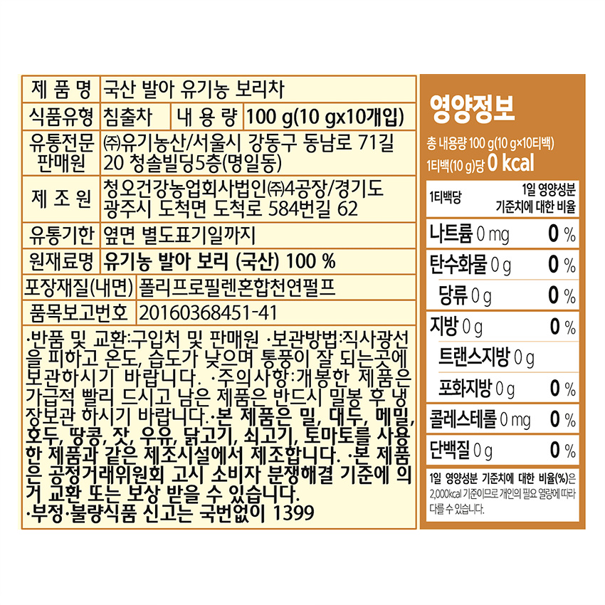 오가닉스토리 보리차(유기농발아_티백_10g*10T 100g/EA)