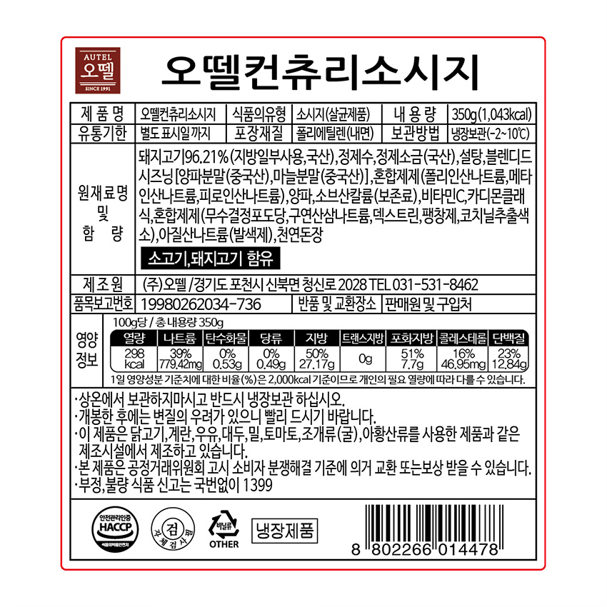 오뗄 컨츄리 소시지(350g/EA) 소세지 이미지