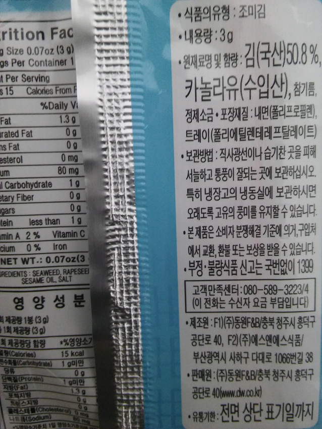 동원 도시락김(4호_8절8매_8봉입 17g/PAC)/국내산 이미지
