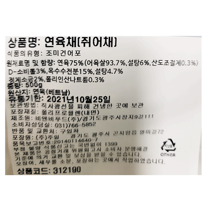 본 제품은 제품입고일별 소비기한 또는 품질유지기한이 상이하므로, 필요시 고객센터로 문의하여 주십시오. 제조일로부터 300일 까지