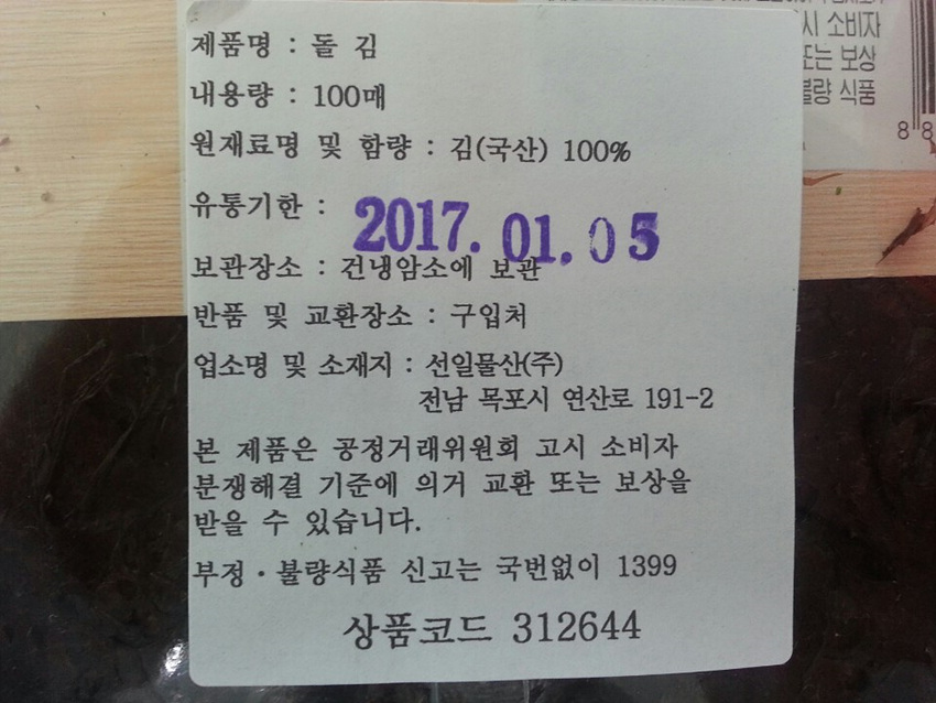 생김(돌김_100매입 250g/EA)/국내산 이미지
