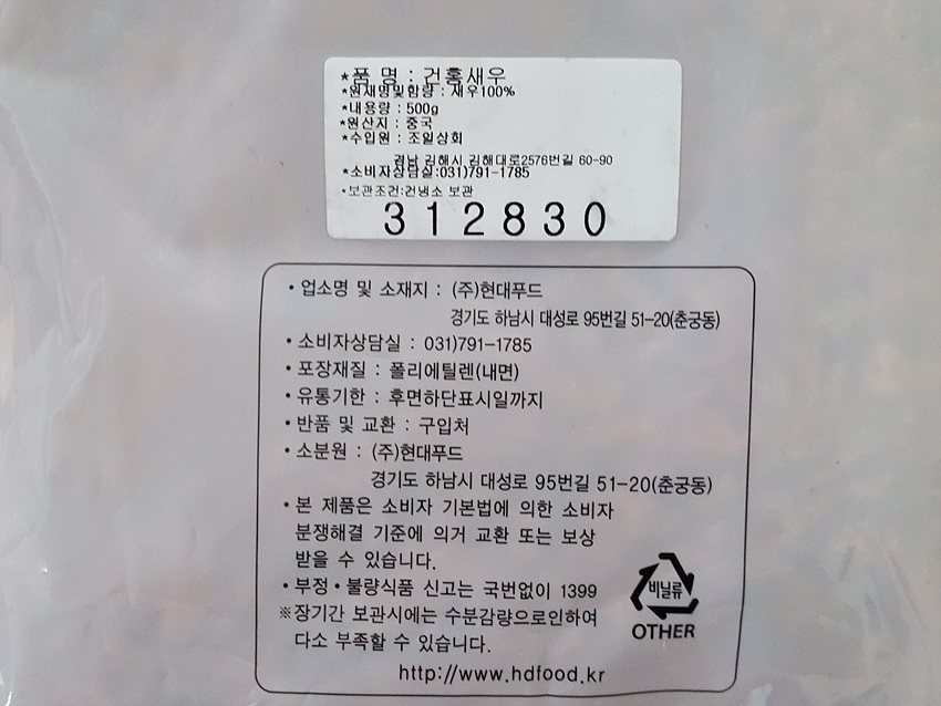 건홍새우(통 500g/EA)/중국산 이미지