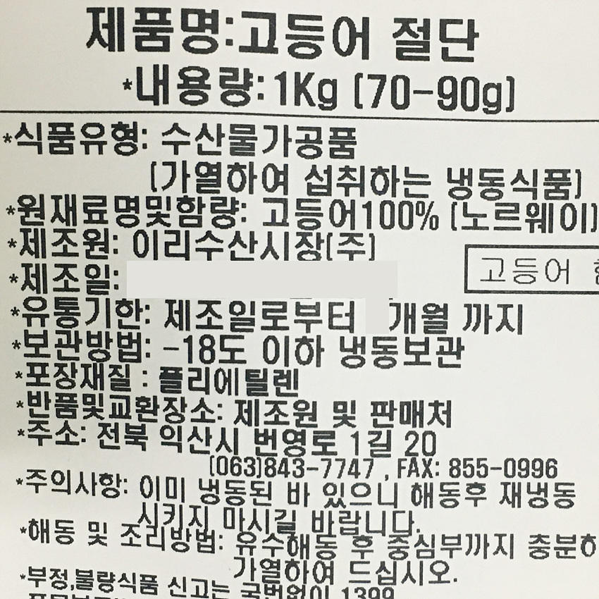 고등어(내장제거_70~90g/토막 조림용 KG)