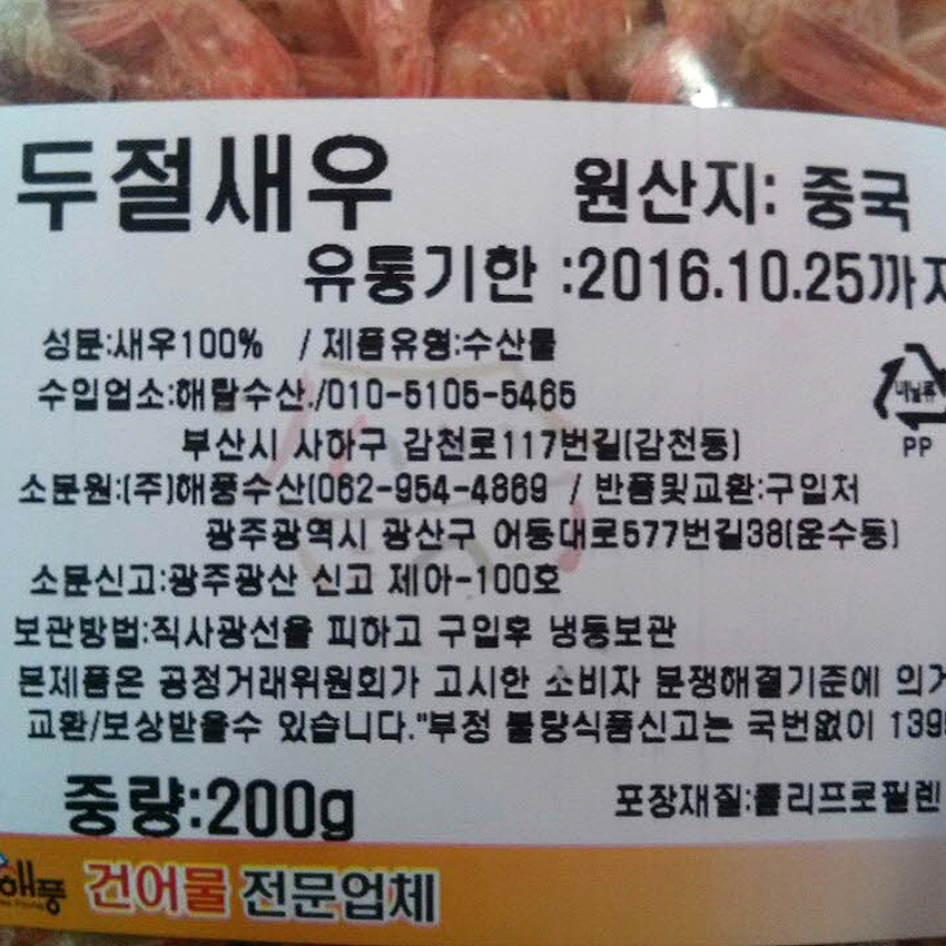 해풍수산 두절건새우(중 200g/EA)/중국산 이미지