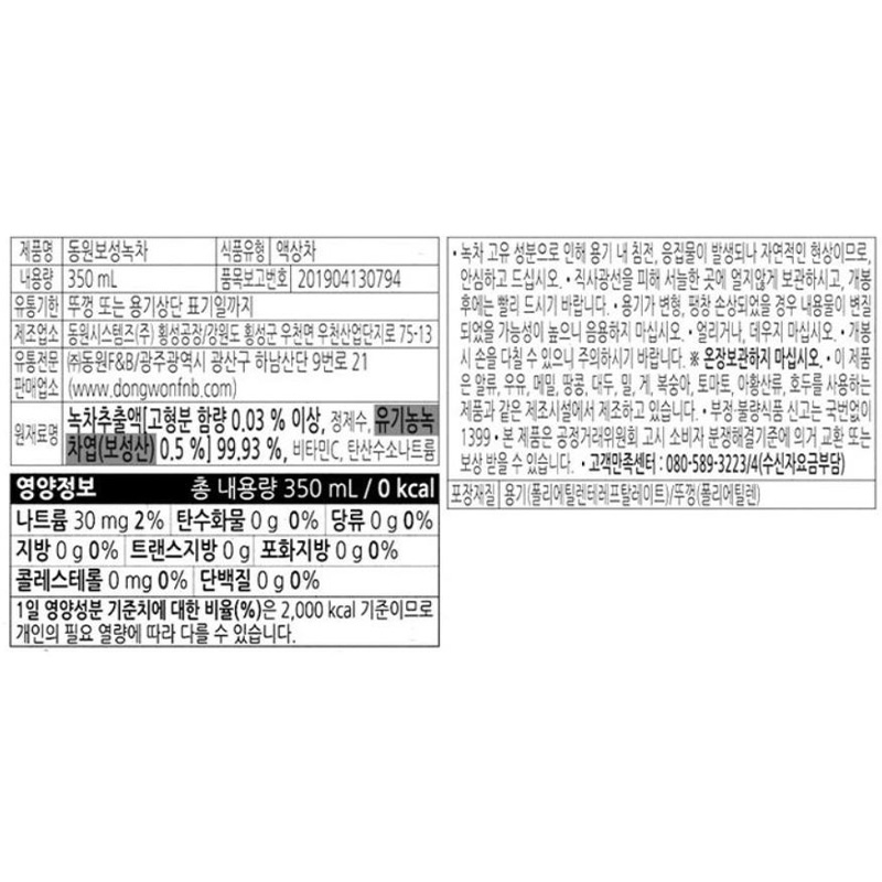동원 보성녹차(350ml_PET 350g/EA)x24