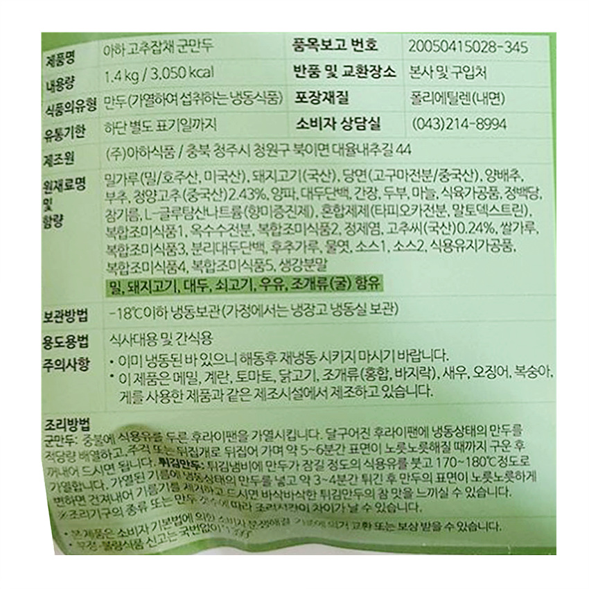 아하식품 고추잡채 군만두(28g*50입 1.4Kg/EA) 잡채만두 야끼만두 이미지
