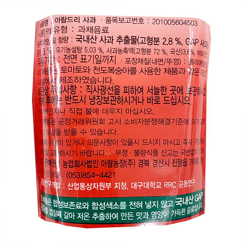 아람농장 아람드리사과주스(138ml_GAP사과 138g/EA)