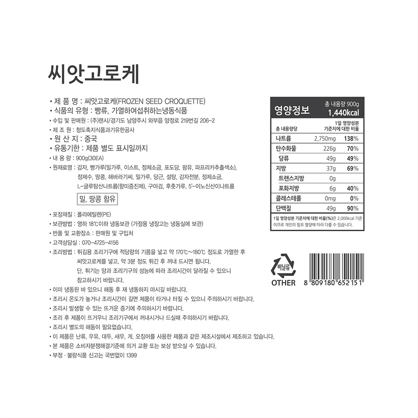 랜시푸드 씨앗고로케(30g*30입 900g/EA) 이미지