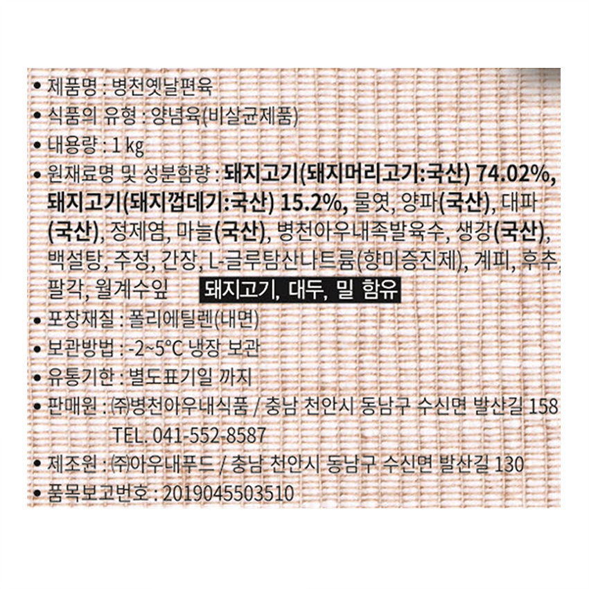 병천아우내 옛날편육(5mm슬라이스 1Kg/EA)