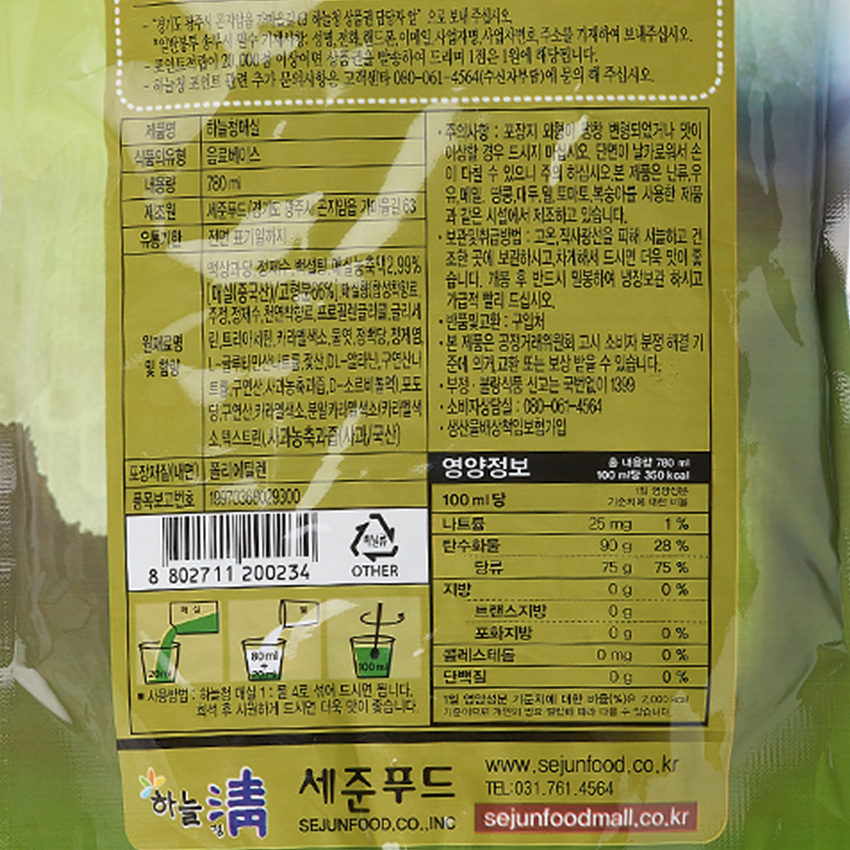 하늘청 매실차(농축5배_NEW 780g/EA)