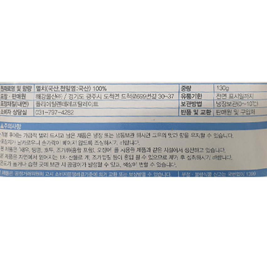 국물멸치(이력추적_트레이포장 국물용 130g/EA)/국내산 이미지