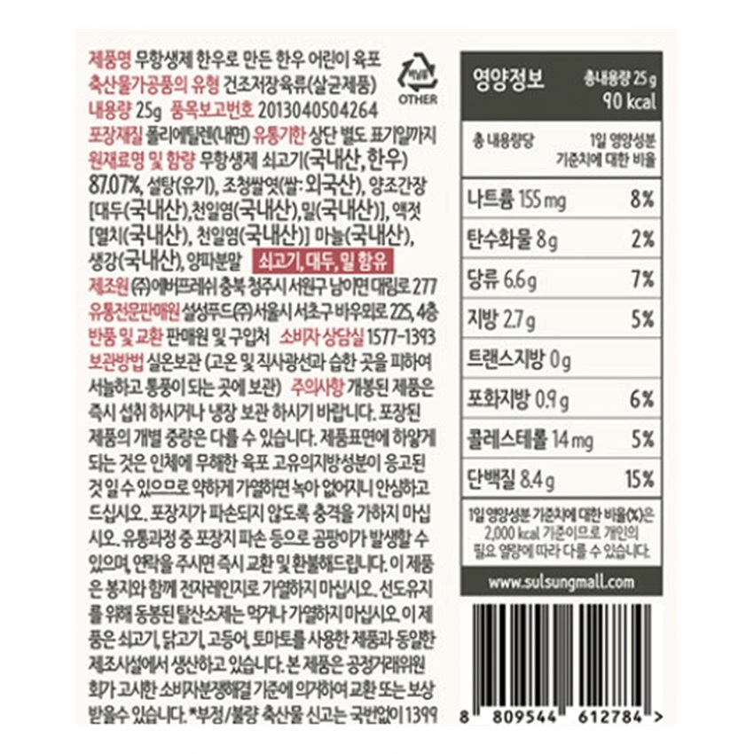 설성푸드 무항생제한우어린이육포(4~5입 25g/EA)