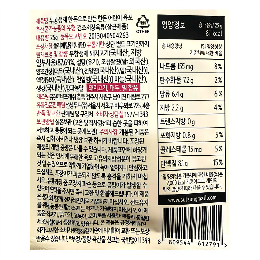 설성푸드 무항생제한돈어린이육포(4~5입 25g/EA)