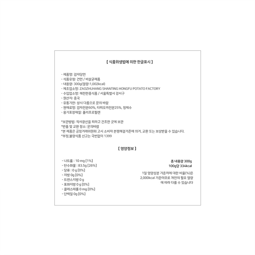 훠궈당면(火锅炖粉_콴펀 300g/EA) 당면
