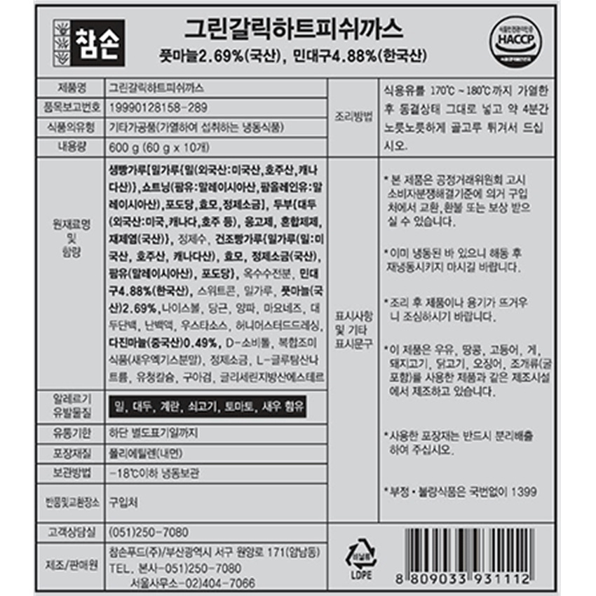 참손 그린갈릭하트피쉬까스(하트모양_유청칼슘_60g*10입 600g/EA)