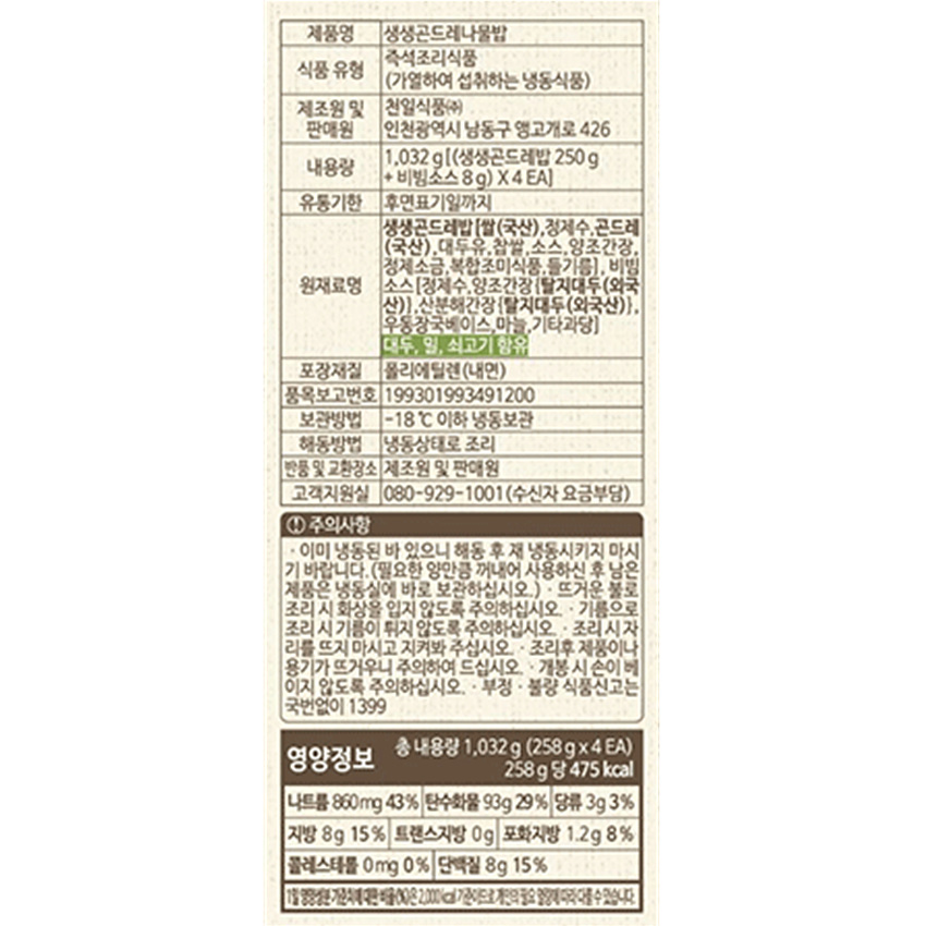 천일식품 곤드레나물밥(250g*4입 1.032Kg/EA) 천일 이미지