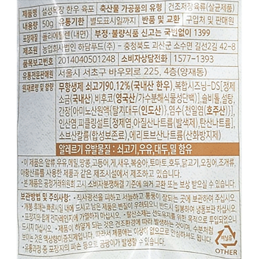 설성목장 한우육포(50g/EA)