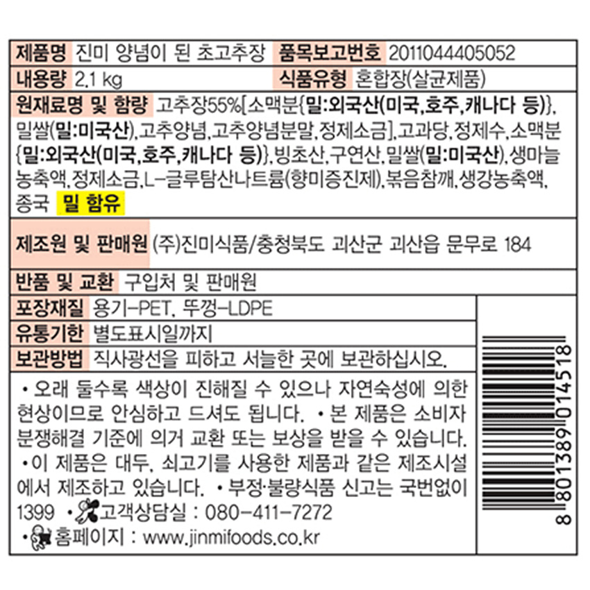 진미식품 양념이된 회초장(2.1Kg/EA)