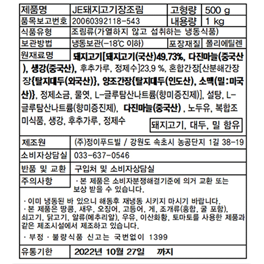 정이푸드빌 돼지고기장조림(1Kg/EA) 업소용 반찬