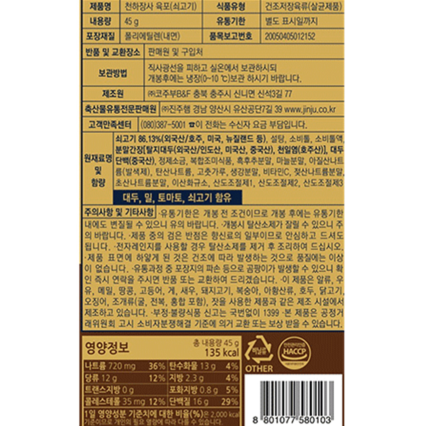 천하장사 육포(쇠고기 45g/EA) 소고기육포