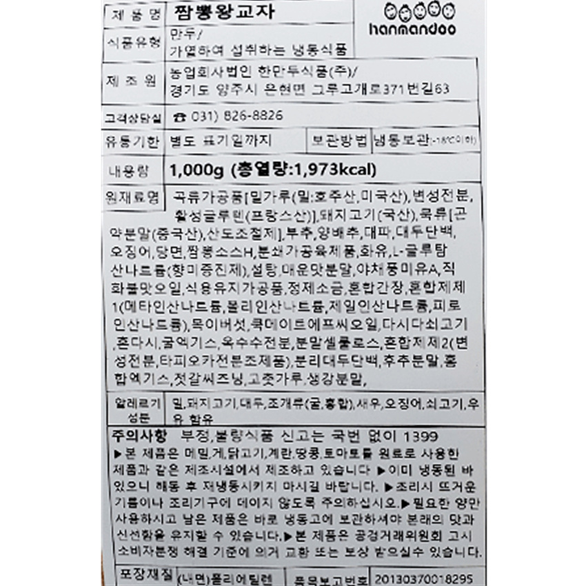 한만두식품 짬뽕왕교자(33g±1*30입 1Kg/EA) 만두 짬뽕만두 이미지