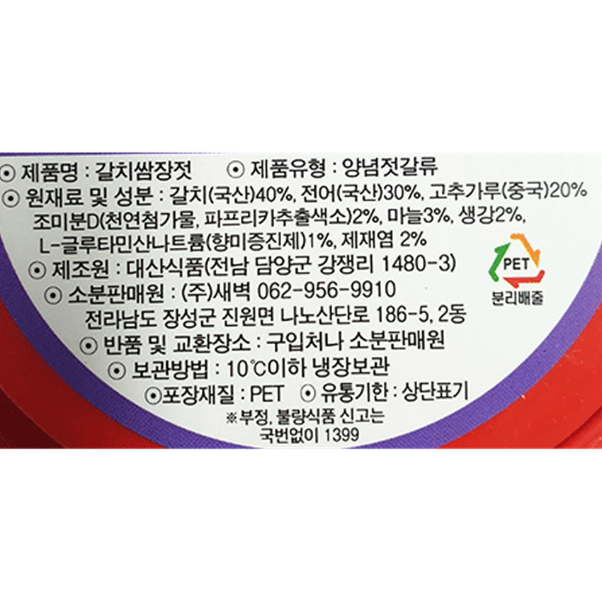 새벽 갈치쌈장젓(5Kg/EA)  업소용 반찬 이미지