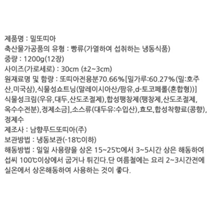 또즈랑 밀또띠아(12인치_12입 1.2Kg/EA)
