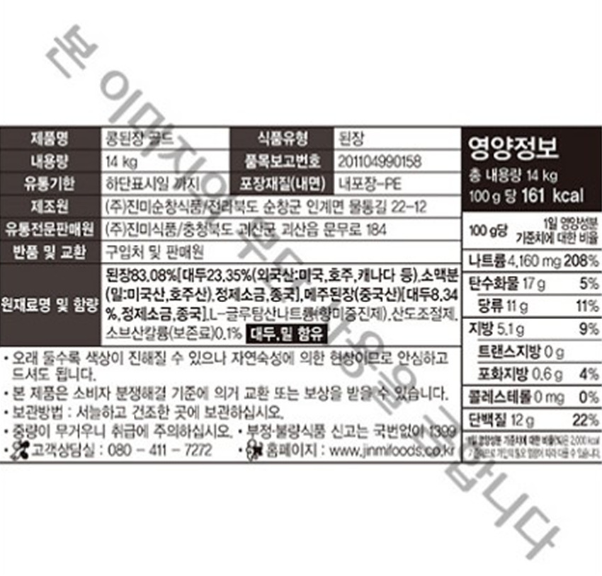진미식품 콩 된장믹스(골드 14Kg/EA)
