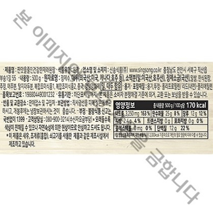 신송식품 재래 된장(짠맛을줄인건강한 500g/EA)