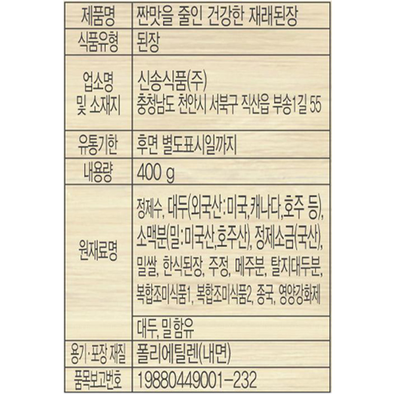 신송식품 재래 된장(짠맛을줄인건강한 400g/EA)