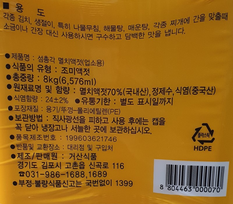 섬총각 멸치액젓(8Kg/EA) 이미지