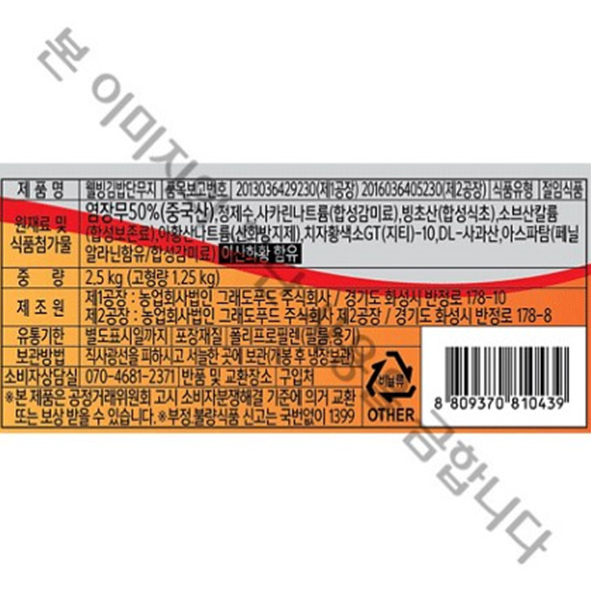 웰빙랜드 단무지(6mm 꼬마김밥용 2.5Kg/EA)두께 6mm 길이 14cm 업소용 반찬