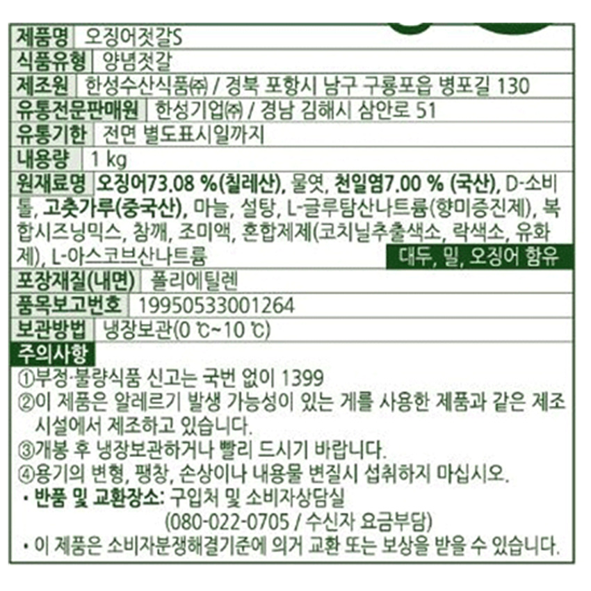 한성기업 오징어젓S(1Kg/EA) 업소용 반찬