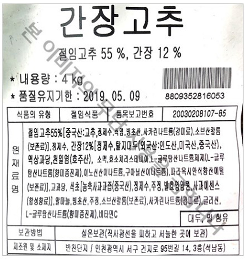 원재료명 및 함량