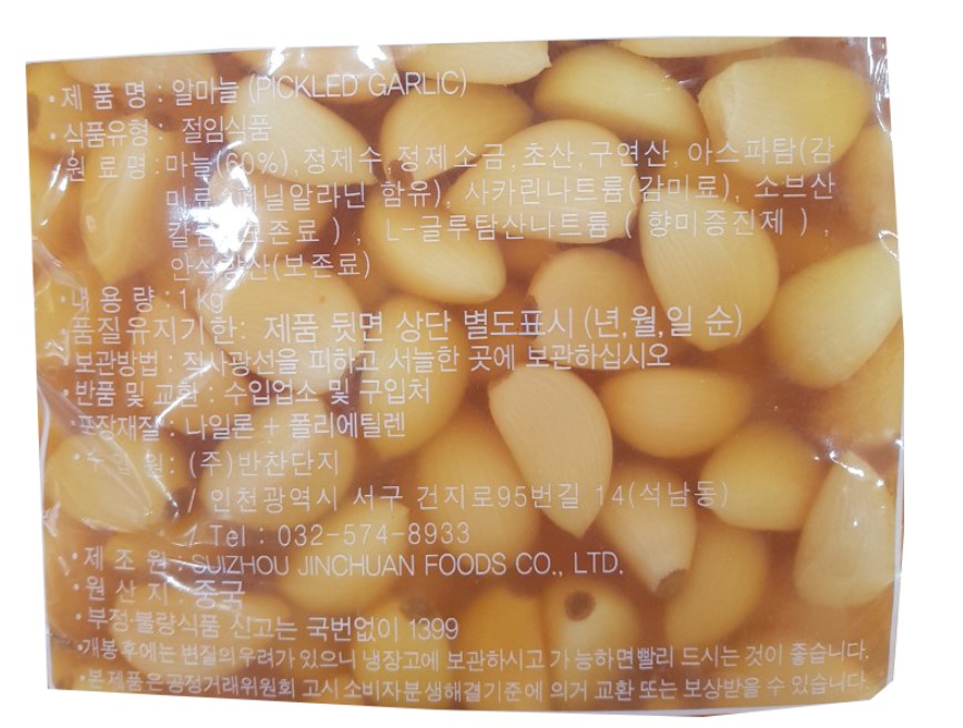 이음푸드 깐마늘지(유통용 1Kg/EA) 업소용 반찬