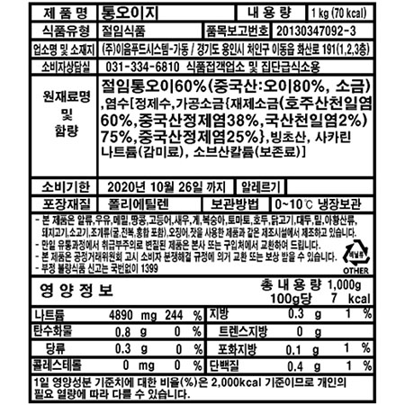이음푸드 오이지(통 유통용 1Kg/EA) 업소용 반찬
