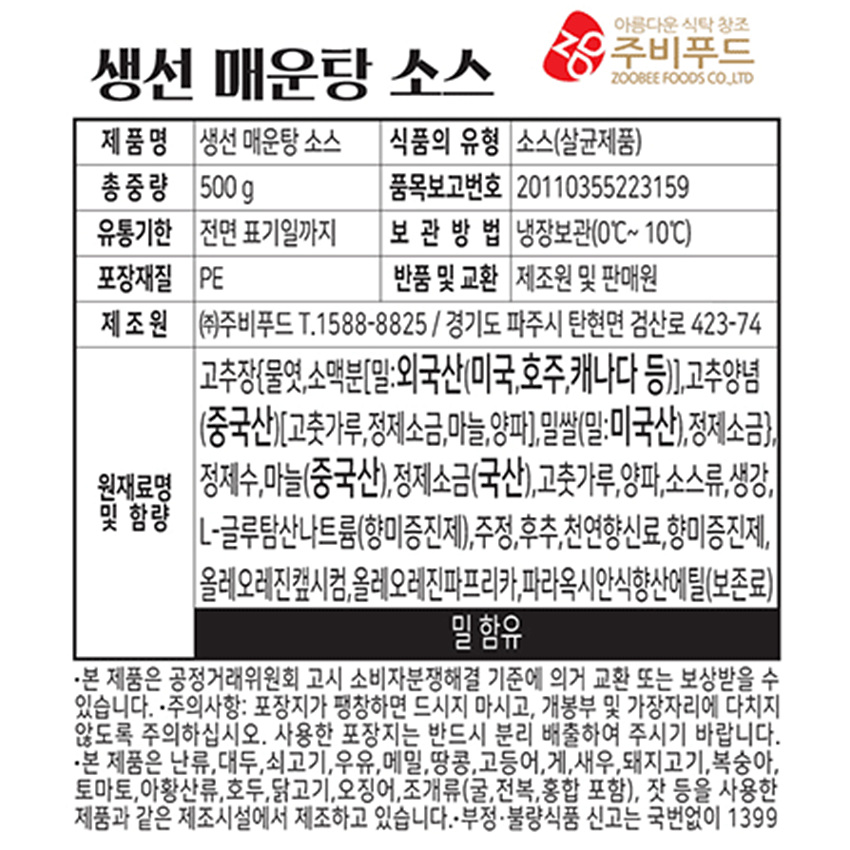 주비푸드 생선매운탕소스(500g/EA) 이미지