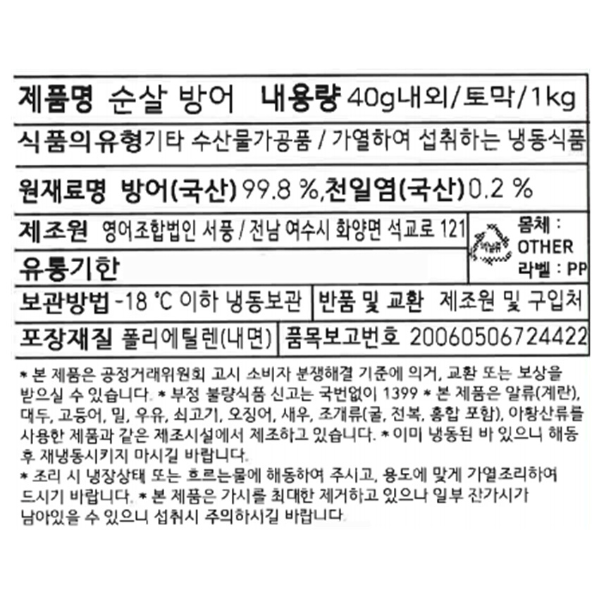 순살방어(가시제거율99.9%_30~40g/토막 1Kg/EA)/국내산