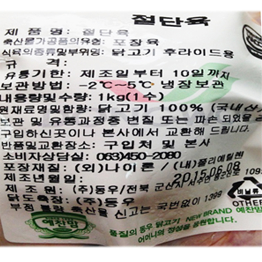 본 제품은 제품입고일별 유통기한 또는 품질유지기한이 상이하므로, 필요시 고객센터로 문의하여 주십시오. 제조일로부터 8일 까지