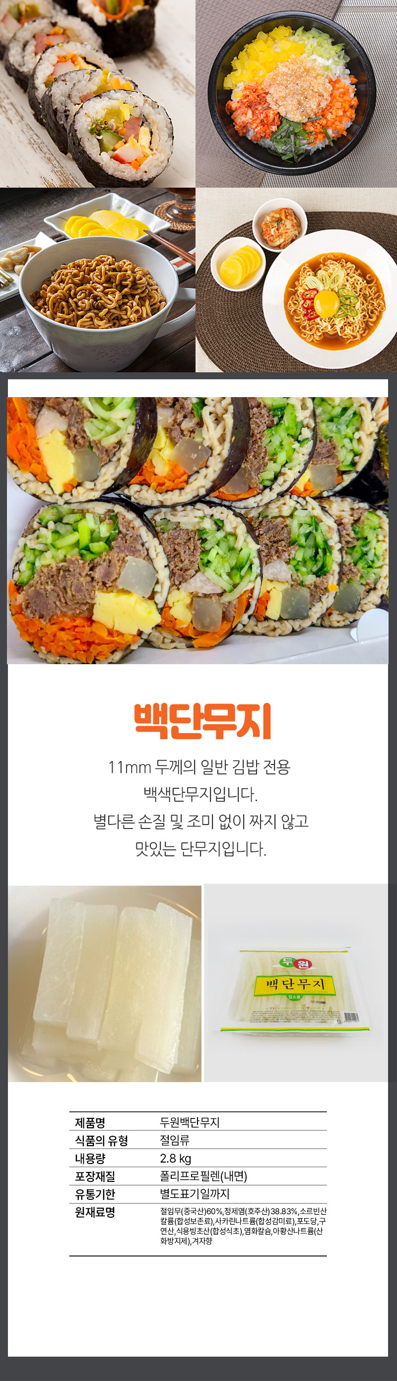 11mm 두께로 김밥전용 백단무지입니다.