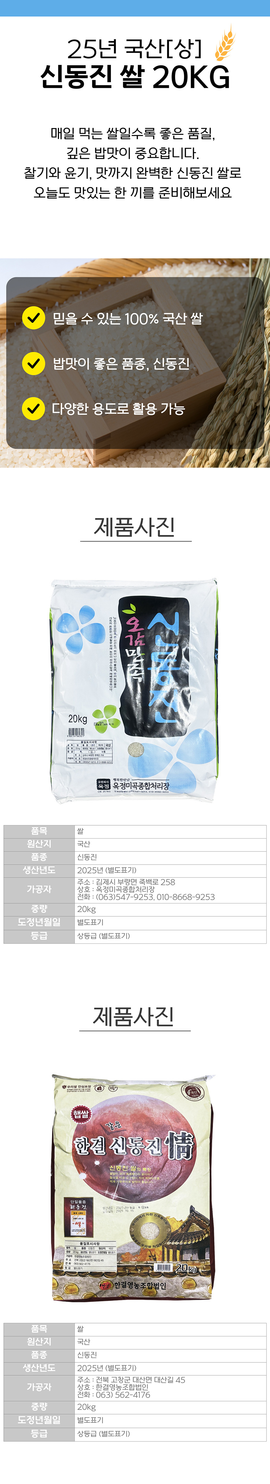 ★초특가★ [새청무 교차출고][25년 단일미] 신동진 쌀 20kg [상등급,단일품종] 이미지