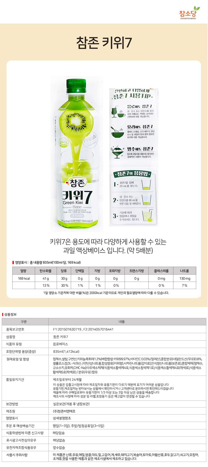 참존 키위7(원액)835ml / 과일액상베이스 음료베이스 키위맛